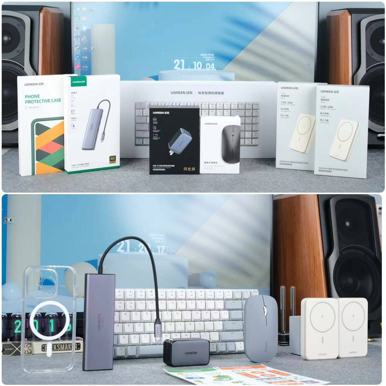 数码产品一定是大家双十一最先入手的产品,刚好前阵子苹果华为都发布了新品,大家趁着双十一各种优惠叠加怎么都要给自己配一套。这不老王我又开始大采购了,单单绿联一个品牌就在旗舰店一次性入手了7件好物,手机用的磁吸充电宝、手机壳、手机钢化膜、氮化镓便携充电头一个都没落下,最后还给新的mini电脑配了一套键鼠和拓展坞,这下绿联一家人齐齐整整的,也算是双十一提前团聚了。