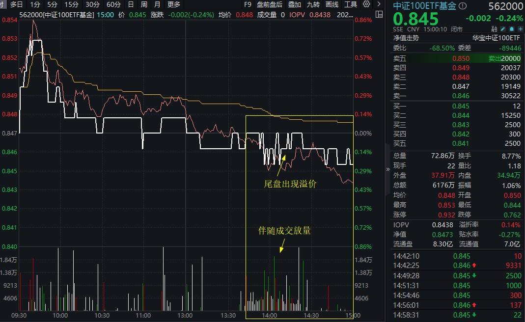 二、【A股核心龙头业绩稳健,中证100ETF基金(562000)尾盘放量溢价!机构:经济预期有望在年末上修】