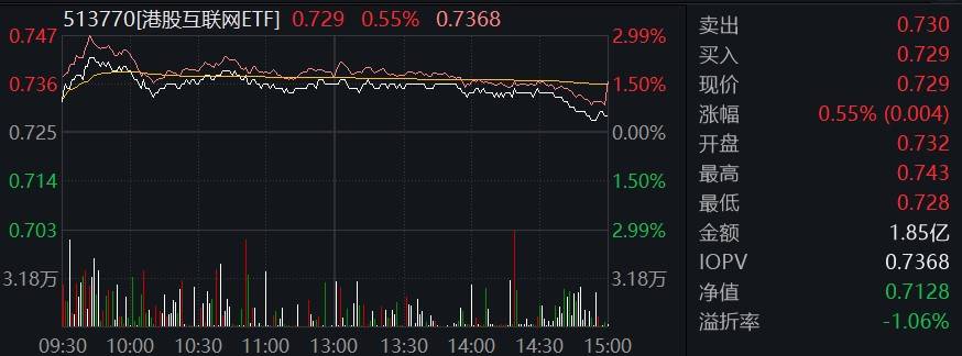 场内ETF方面,截至15:00收盘,覆盖上述科网龙头股的港股互联网ETF(513770)场内价格收涨0.55%,日成交额1.85亿元。资金面上,昨日该ETF获近400万元资金净申购。