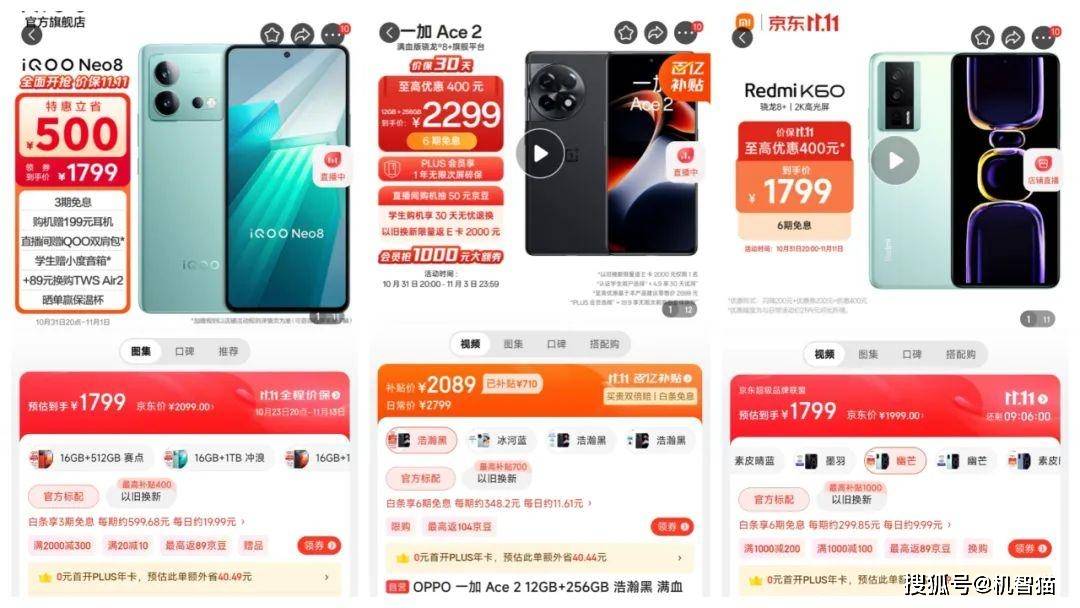 因为各大电商平台和品牌自己给出的优惠非常到位,比如之前价格比较高的中端机——一加Ace 2,这部手机在618期间只优惠100到200元左右,现在12GB+256GB到手价仅2099元,Redmi K60同规格1799元,2099元能买16GB+512GB,iQOO Neo8的12GB+256GB售价也仅1799元。