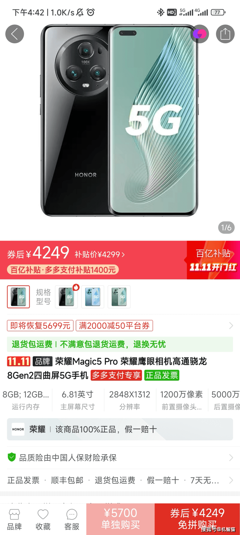 但有一些例外,就是当今年旗舰价格特别合适的时候,例如荣耀Magic5 Pro在拼多多用4200多元就能买到16+512GB版本,如果有秒杀活动,甚至3800元左右,这就非常超值了。即便等到Magic6 Pro发布,同内存规格也不可能卖4200元。