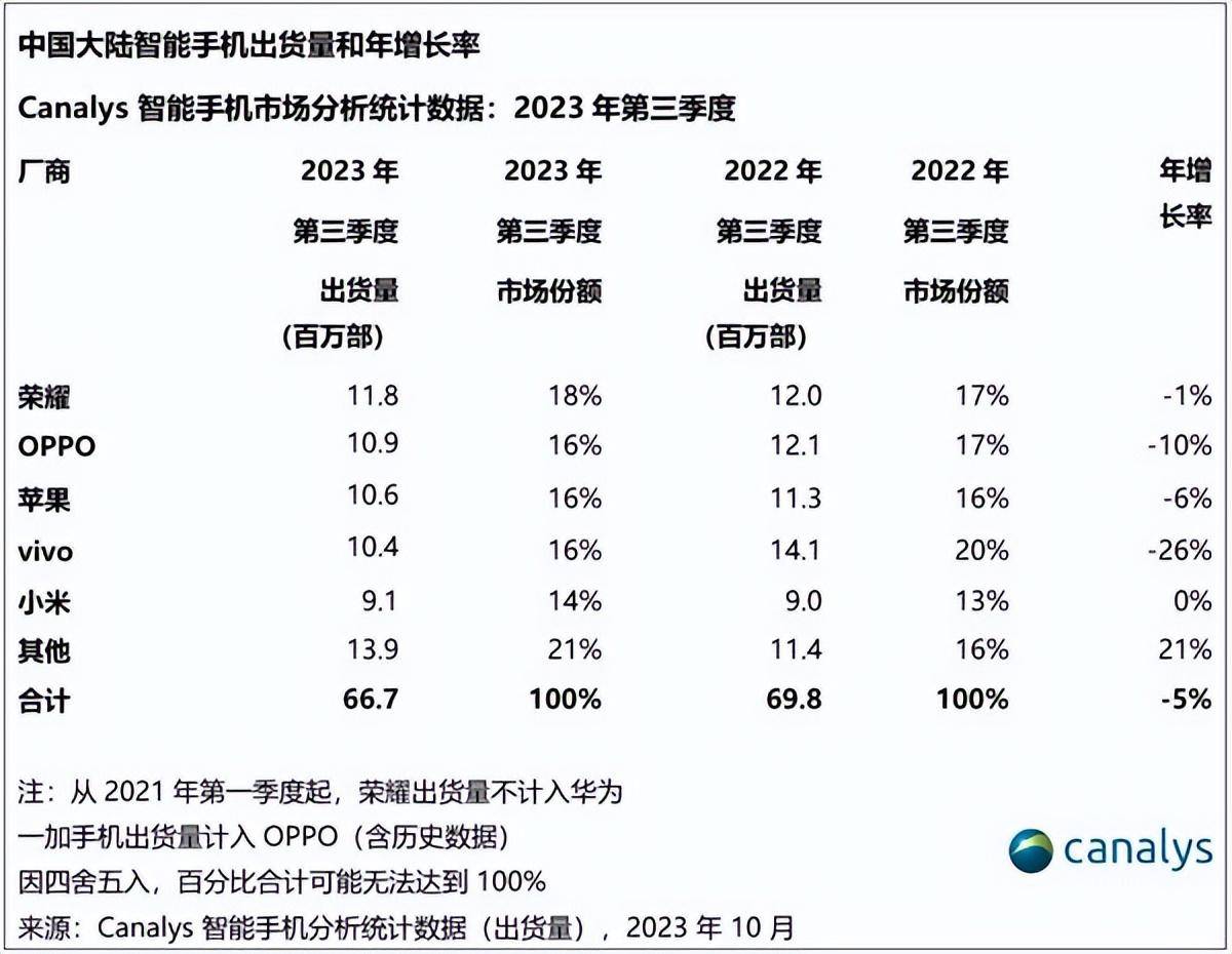 随着Mate 60继续热销,华为Q4重返TOP5厂家几乎是板上钉钉的事。至于在榜单中能走到多高,则取决于Q4发布的新nova的表现,如果麒麟芯片下放nova,且新nova能在十一月中期上市,并有稳定的供货量,那么华为Q4出货量登顶也不是没可能。