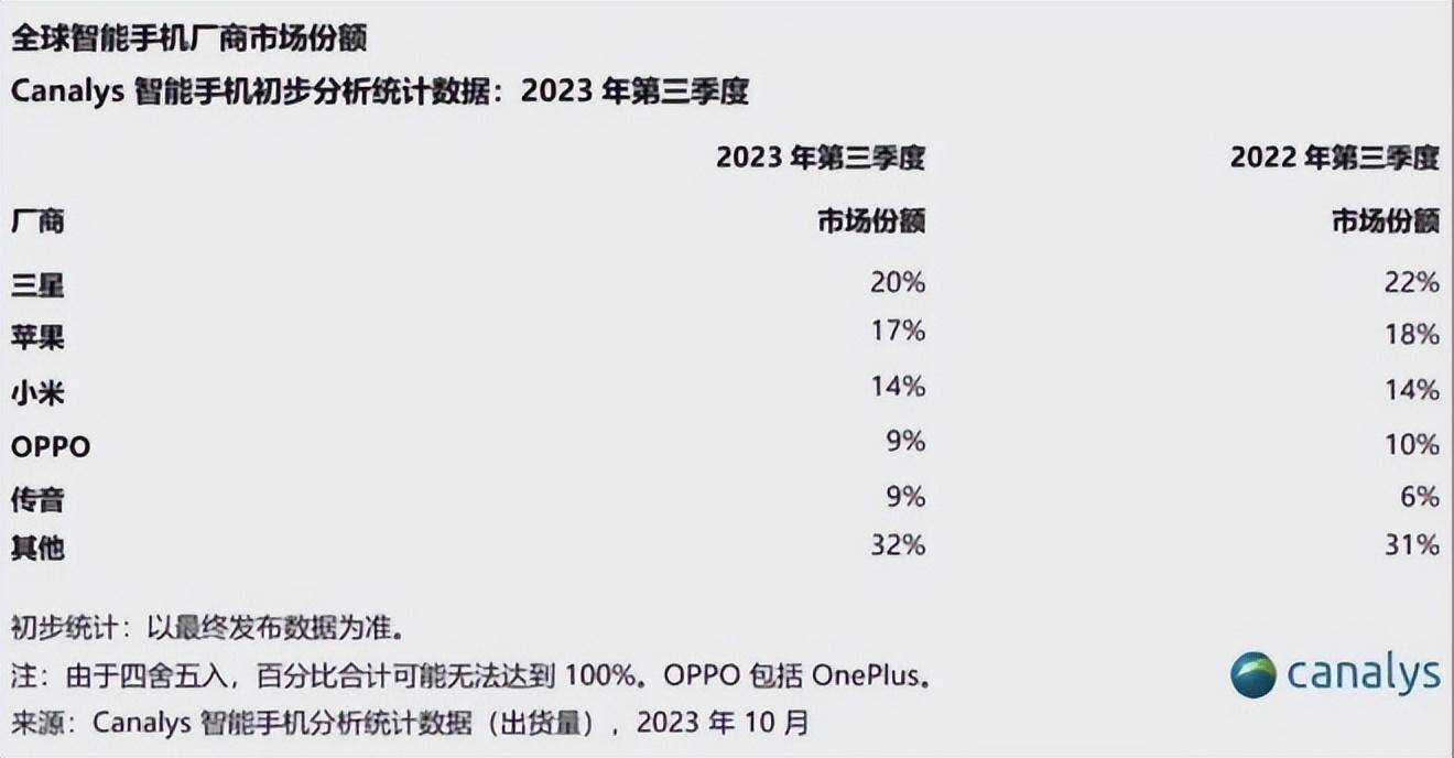 麒麟芯片的回归,iPhone 15的发布,诸多手机的发布,手机市场上再现“友商互撕”。Q3的手机市场,还是颇为热闹的,也发生了不少影响手机出货量的事件。那么在三个月的市场厮杀之后,手机厂家会交出怎样的成绩单?