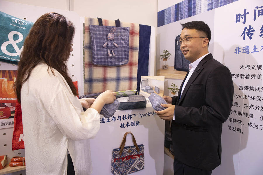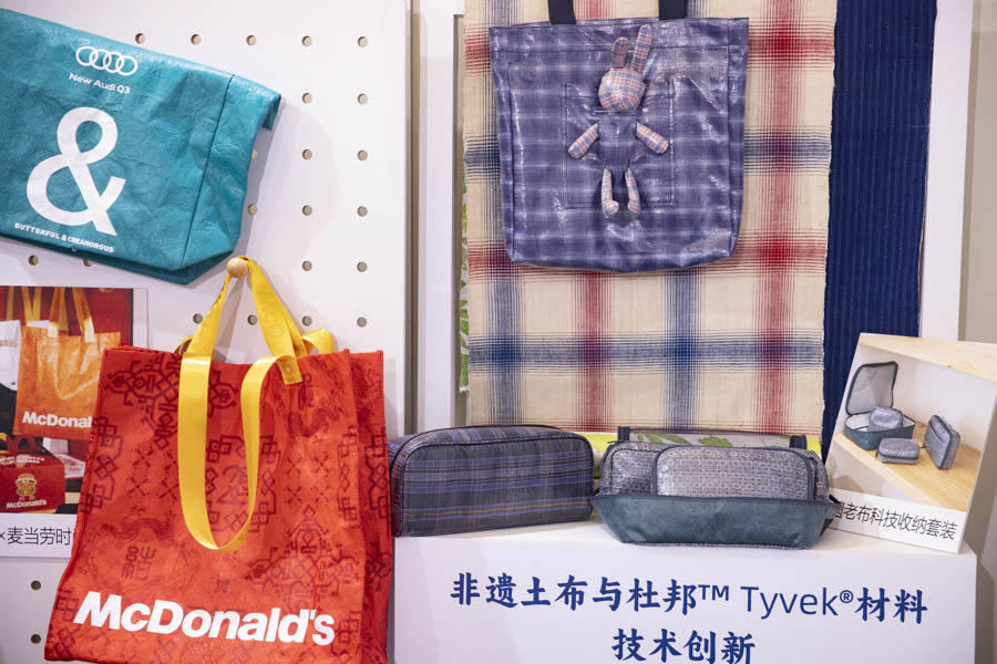 当非遗土布与高科技材料融合,会产生什么效果?昨天在上海新国际博览中心开幕的2023中国国际全印展上,上海企业研发的“科技土布”惊艳亮相,它们被制成书包、收纳袋、服装等各种消费品,吸引了很多参观者驻足。在设计师助力下,“科技土布”有望吹起一阵“国潮风”,让上海奉贤区的庄行土布焕发新的生机。
