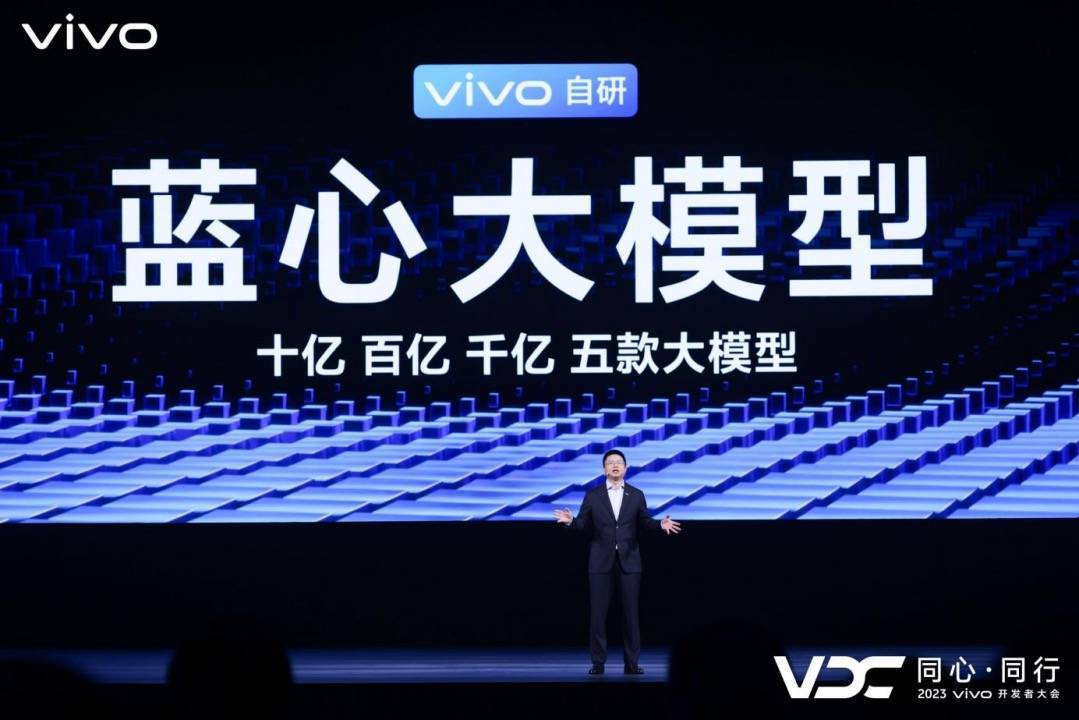 11月1日,vivo在开发者大会上正式发布了自研通用大模型矩阵——蓝心大模型BlueLM,以及智能辅助应用“蓝心小V”和以公版App形式推出的自然语言对话机器人“蓝心千询”。