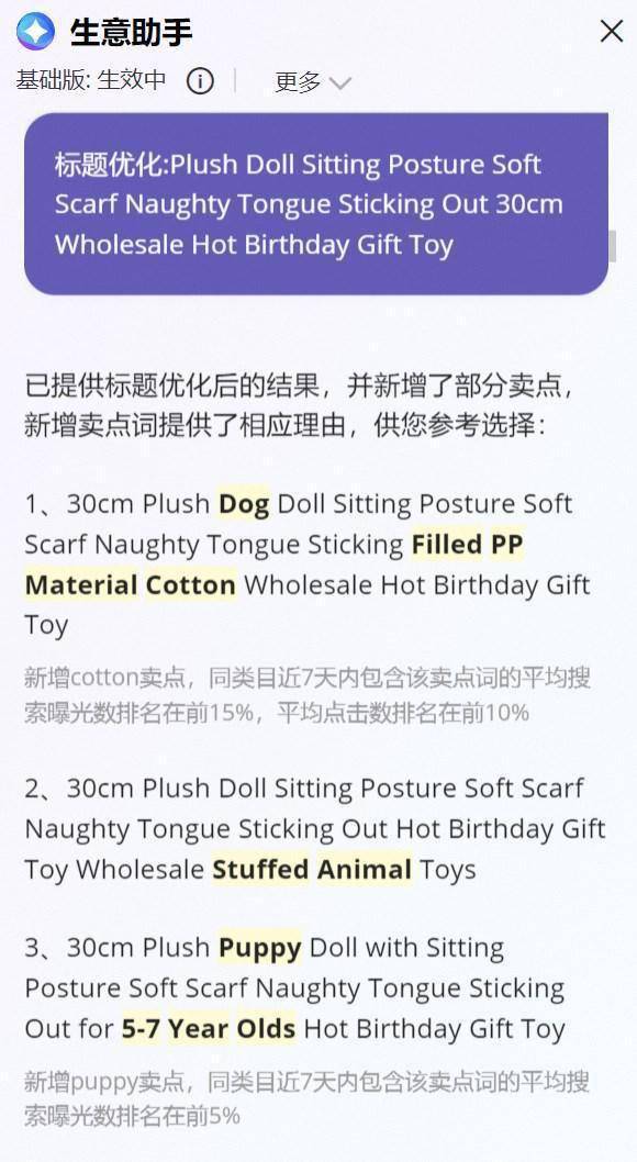 AI 生意助手可以根据实时市场洞察优化、提炼产品关键词