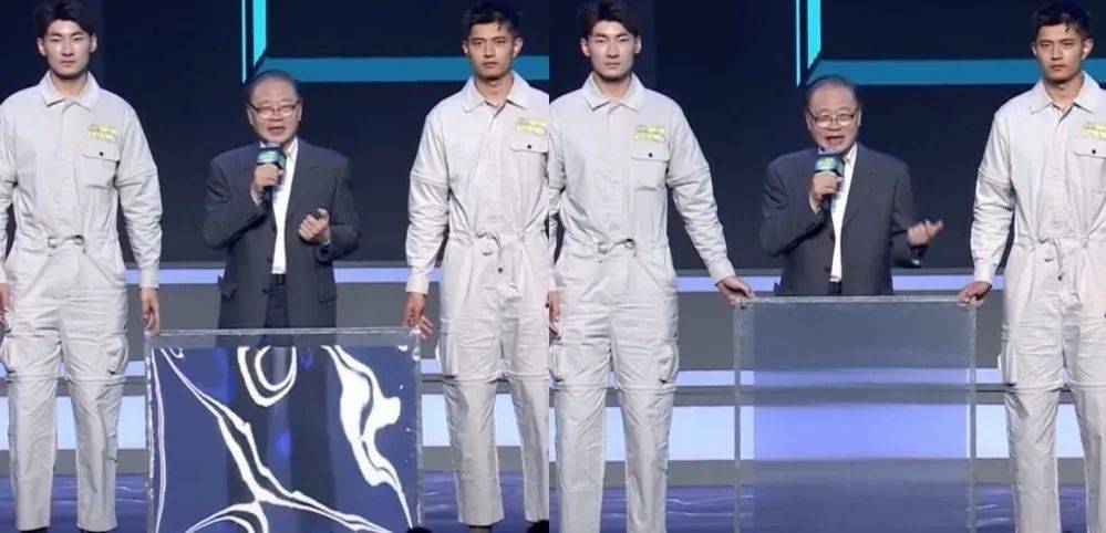 实验中将薄膜板旋转90度,就是为了使柱镜与褚君浩院士的腿平行。而之所以能看到舞台背景,主要是因为背景里的横条纹。这些横条纹在成像后依然是完整的条纹,因此较为醒目,也正是这些横条纹足以吸引注意力,才使得隐身效果更为突出。