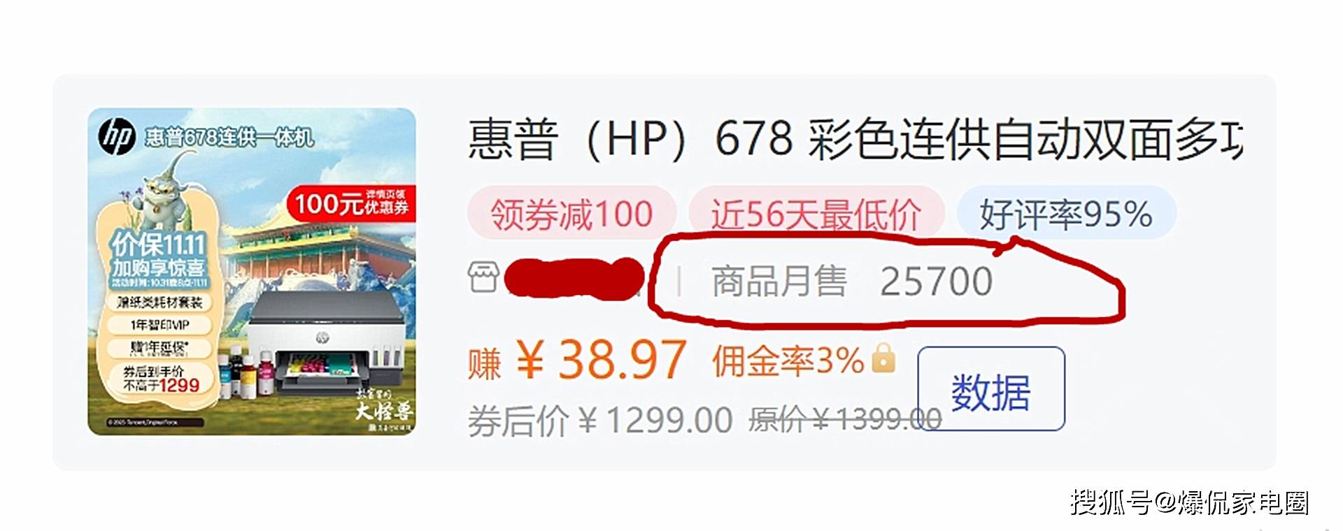 惠普(HP)678 彩色打印机,是一款多功能喷墨式打印机,以月销量超2.5万台的销量位居销榜榜首。