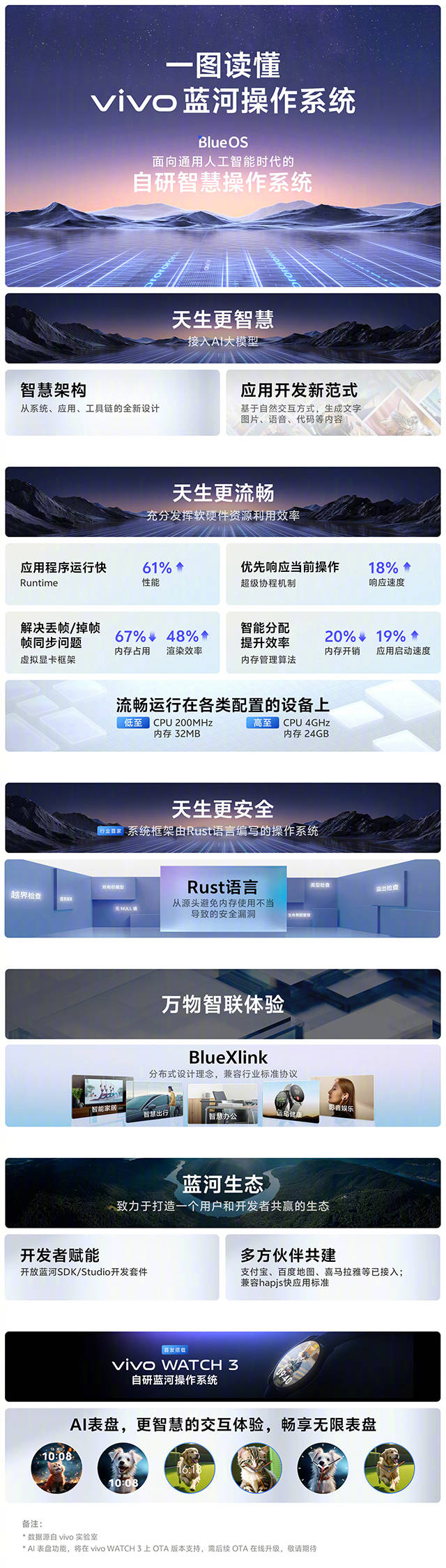 六年探索,终成蓝河。而在通往通用人工智能时代的探索道路上,vivo也将持续深耕操作系统底层技术创新,加码开发者赋能与生态伙伴合作,全力推进产业生态建设,为用户打造更加丰富、安全、智慧、流畅的应用体验,为产业的繁荣发展贡献蓝河力量。