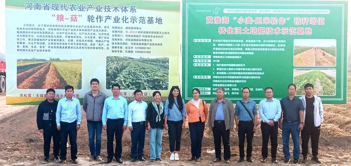 10月29日,“中-欧NBS(基于自然解决方案)农业养分管理与可持续转型”国际科技合作项目欧方负责人——德国霍恩海姆大学社会科学学院Andrea Knierim教授及团队人员Sara Yasaminshirazi、刘琪瑞博士一行,赴中方项目“黄淮海‘小麦—玉米轮作系统’秸秆增值转化沃土培肥技术”实施地河南金隆菇业有限公司试验基地进行技术交流。