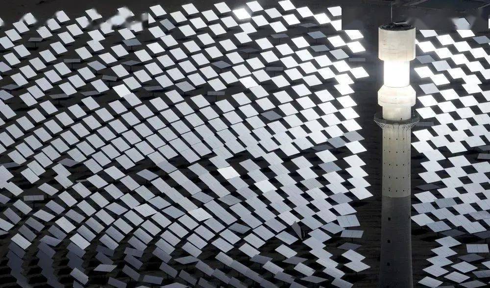 蔚蓝色的光伏板在阳光照射下熠熠生辉,光能便转化成源源不断的电能;风力发电机的叶片迎风飞转,风被“捕捉”进一条条输电线;百米高的吸热塔和“镜子海洋”组成熔盐塔式光热电站,科技感与绿色减碳有机结合……