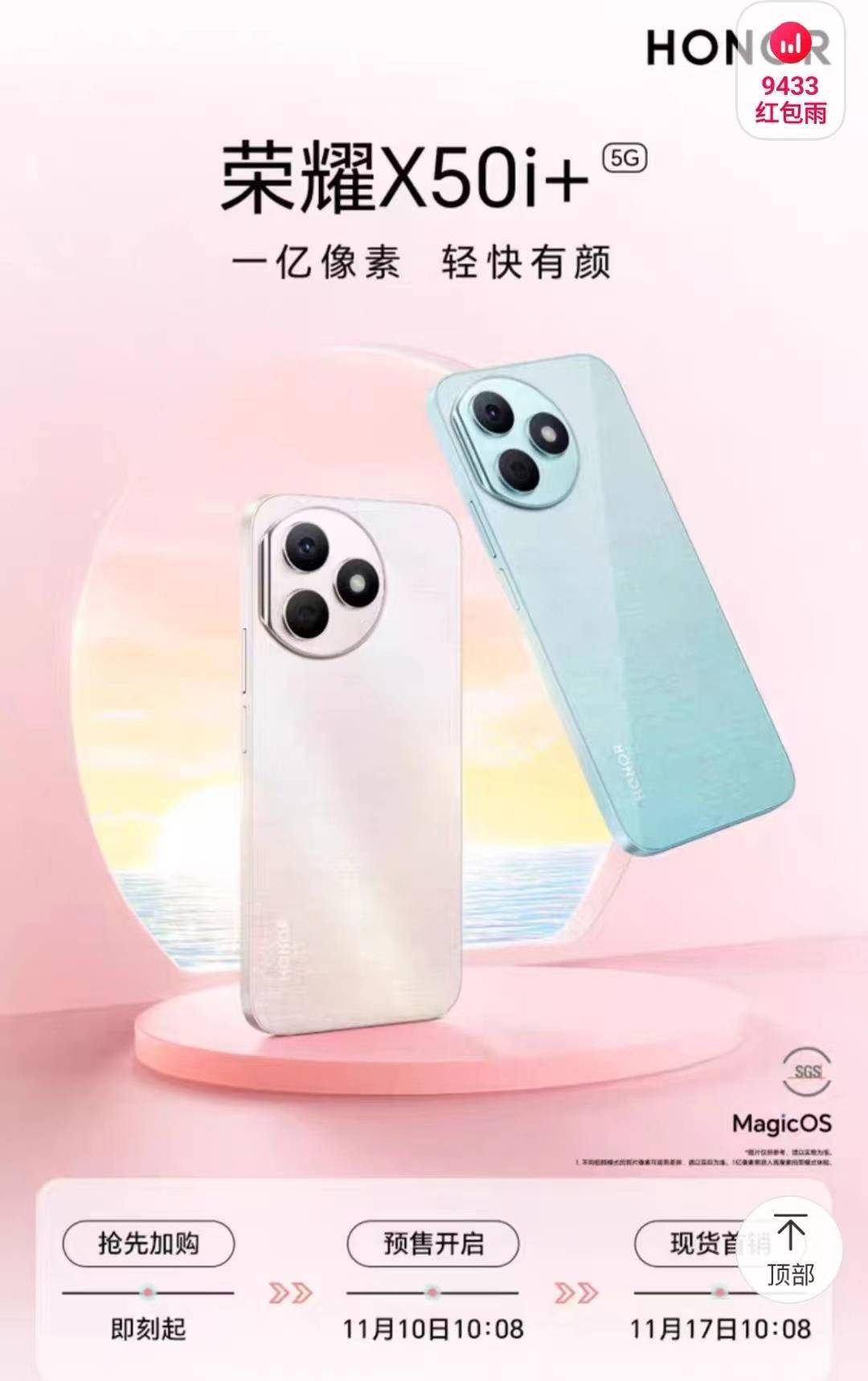 IT之家 11 月 3 日消息,日前一款荣耀 X50i + 手机现身电商平台,将于 11 月 10 日 10:08 开启预售,11 月 17 日 10:08 现货首销。