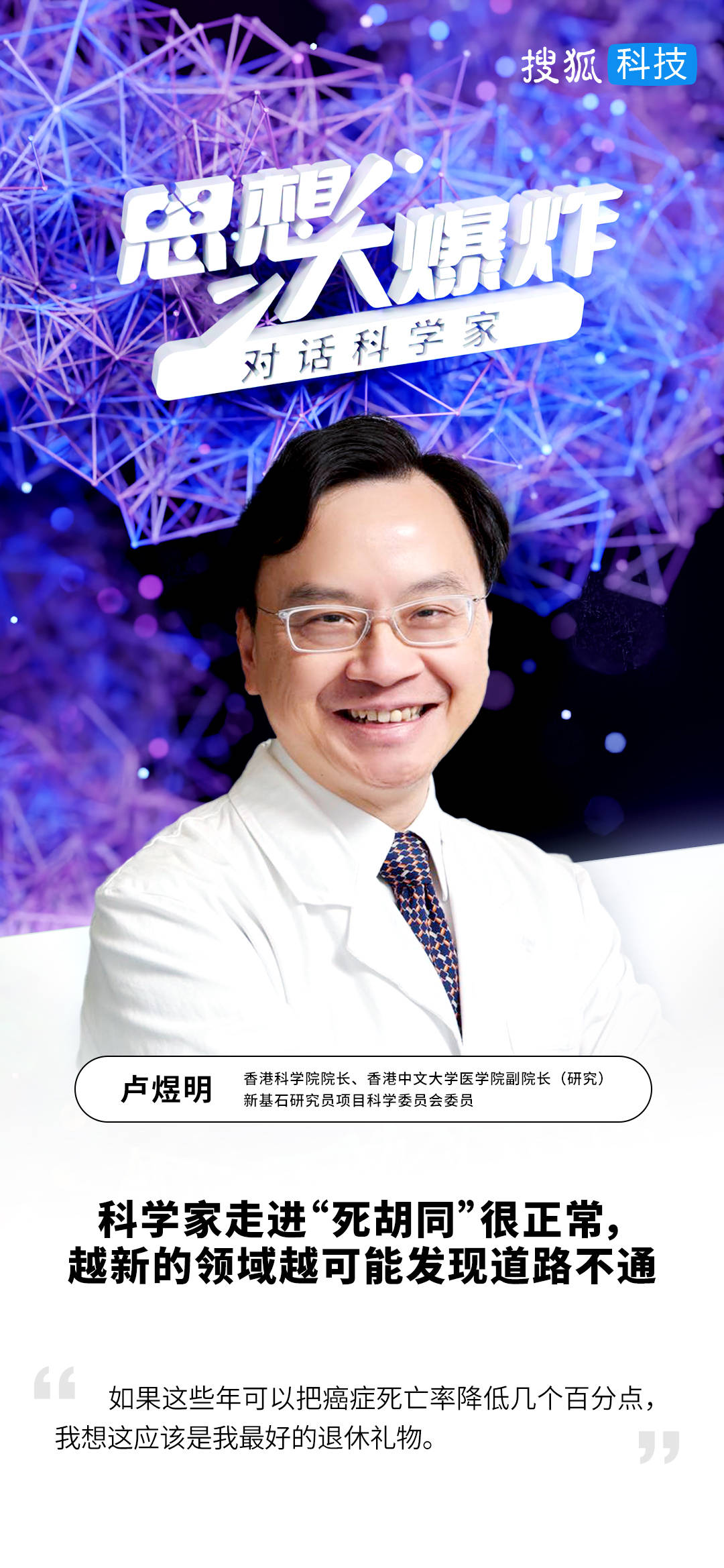 搜狐科技《思想大爆炸-对话科学家》栏目第47期,对话香港中文大学医学院副院长(研究)、香港科学院院长、新基石研究员项目科学委员会委员卢煜明。