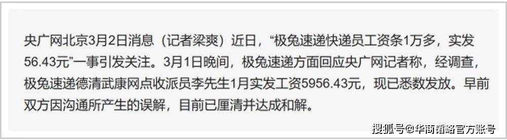 2021年初,更有极兔快递员曾爆料,月送了8000单,账面工资一万元,到手56元,还要倒贴2000多元加油费。虽然极兔回应是乌龙,最终给小哥发出当月5956.43元的工资,并说明其余为扣款,但5956.43,和一万的账面金额,仍相差较远。