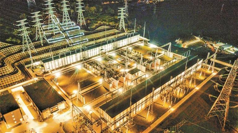 深圳坪山首座500千伏智能变电站——屹百站夜景。 资料图