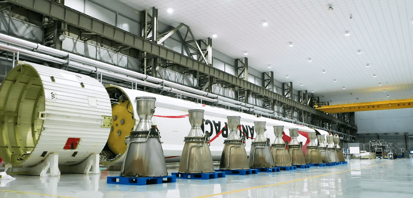 火箭一级采用 4 台“天鹊”80 吨液氧甲烷发动机并联;火箭二级发动机采用单台“天鹊”80 吨液氧甲烷发动机和“天鹊”10 吨级游动液氧甲烷发动机,主机构型与一级发动机单机相同。