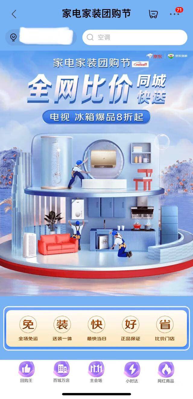 金九银十,是很多家庭消费者购买家电家居商品为家焕新的时刻,今年京东11.11,京东到家联合海信、创维、美的、苏泊尔、倍轻松、凯迪仕、名创优品、以及京东家电专卖店等全国超万家门店,持续开展家电家装团购节,为消费者带来丰富的家电家居商品,以及家电爆品8折起、家居建材5折起等多种优惠,还有即买即装即用的“送装一体”服务,满足用户多样化购买需求。更有京东采销直播间京东到家家电专场,消费者可以体验到“边看直播边下单,小时级收到货”的“所见即可得”即时购物享受。
