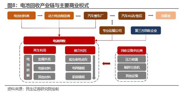而从动力电池回收商业模式上来看,民生证券研究院研究员明芬则认为,让电池生产商、电池材料供应商、主机厂与渠道商、再生资源利用第三方企业四种商业模式并存,同时补强三种回收模式,或许是解决动力电池回收问题的重要路径。