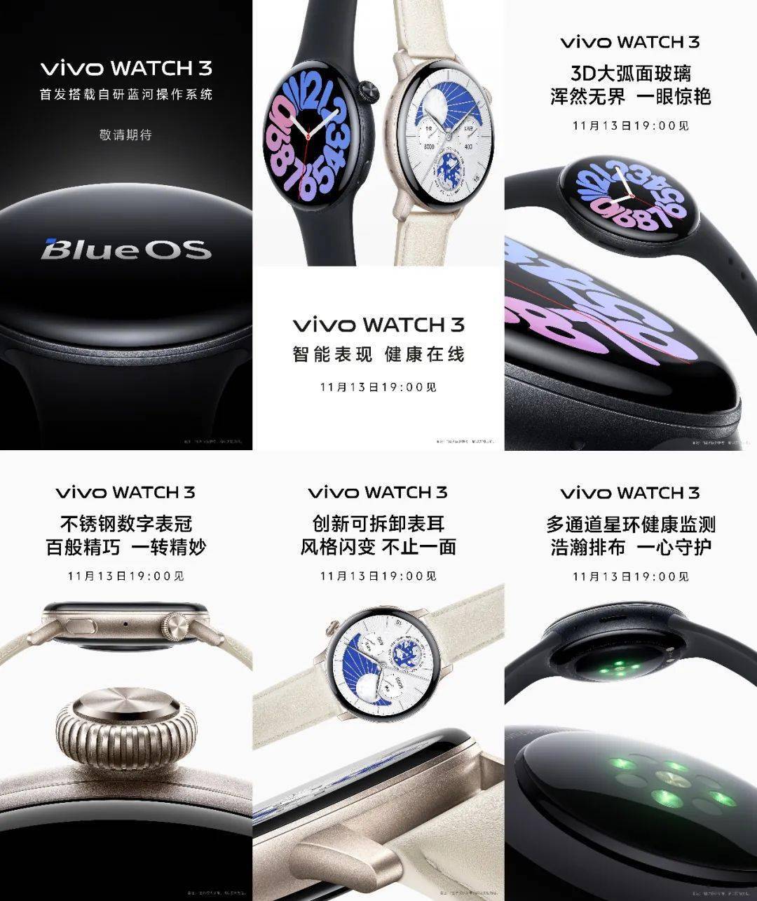 vivo预热将于11月13日19点举行新品发布会,届时将发布vivo X100系列(首批出厂搭载OriginOS 4)和vivo Watch 3(首发搭载vivo全新自研蓝河操作系统BlueOS),今天外观也公布了。