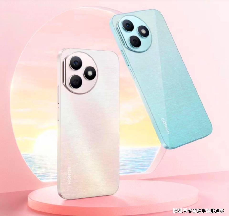 上架之后,荣耀X50i+的外观设计已经变得很清晰了,镜头模组采用圆形切边处理,内部包括双摄及闪光灯,有蓝色、粉色连款可选。