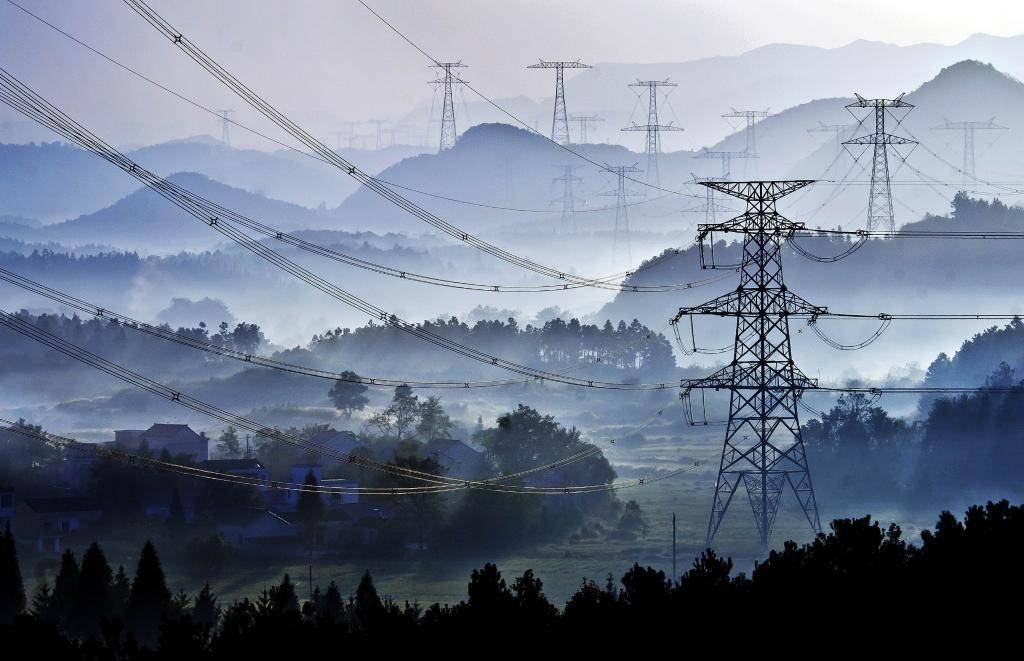 安徽省池州市青阳县境内的特高压输电线路。(资料图片)