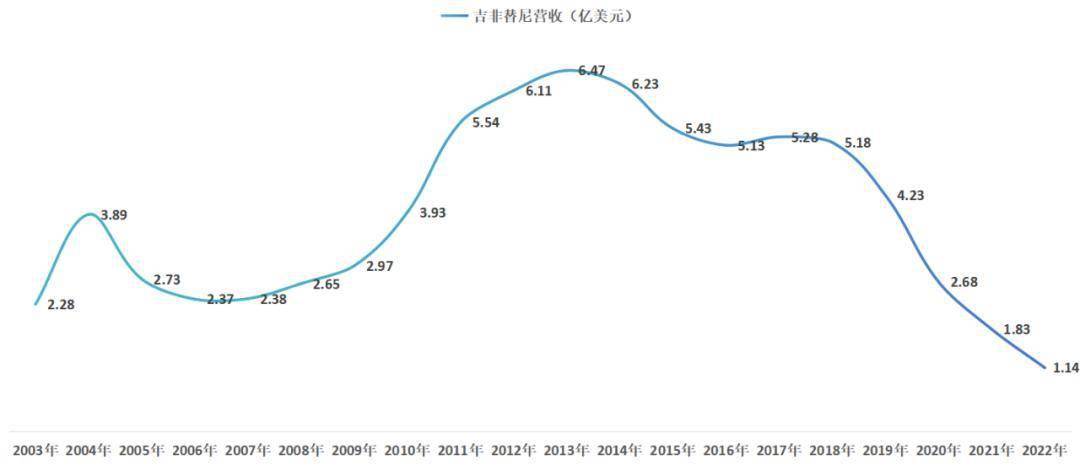图: 吉非替尼历史营收,来源: 锦缎研究院