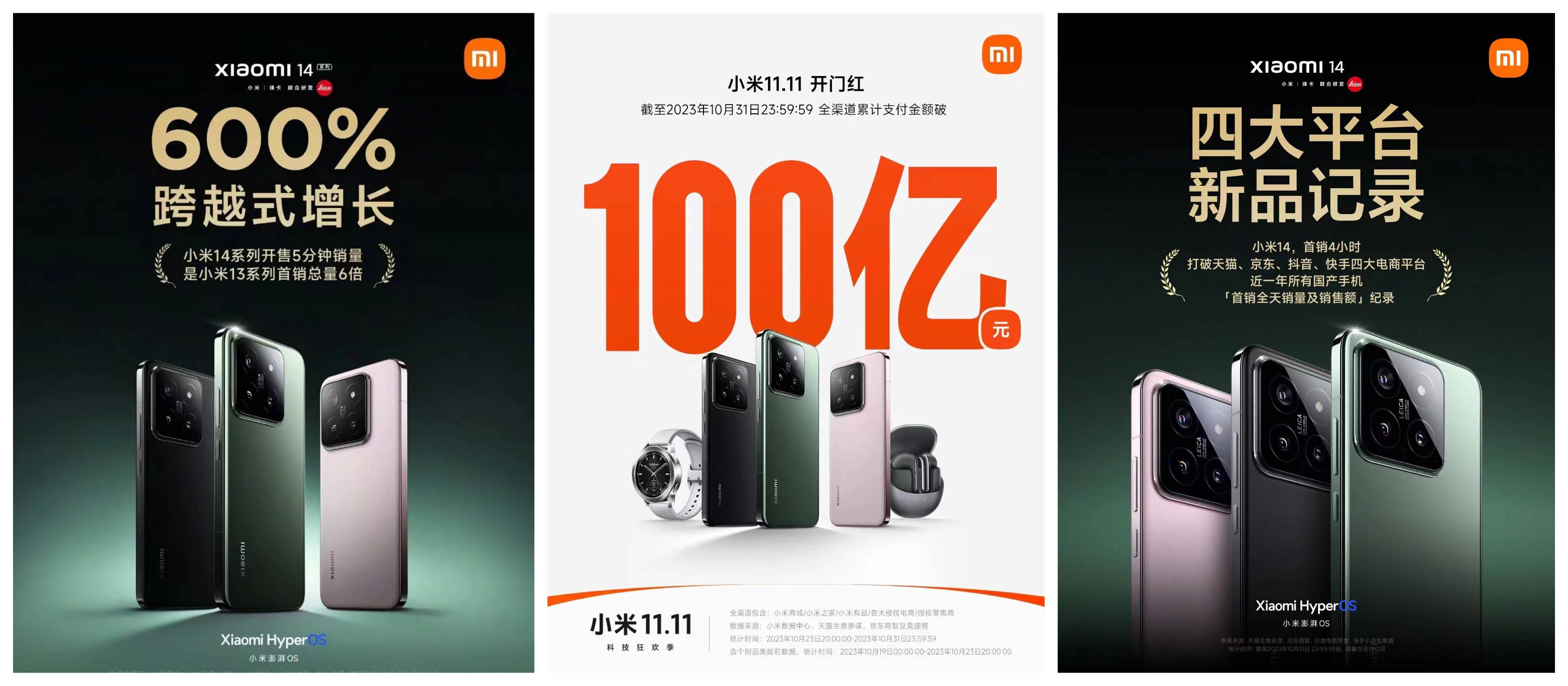 详细解读一下,小米在双11“开门红”活动中,收获满满,斩获了不少“第一”。其中,小米14系列开售仅仅5分钟,其销量就已经超过上一代产品首销销量的600%,而聚焦所有类目,“开门红”开启仅4小时,小米全渠道的累计销售额就已经突破了100亿元,稳稳进入“百亿俱乐部”。