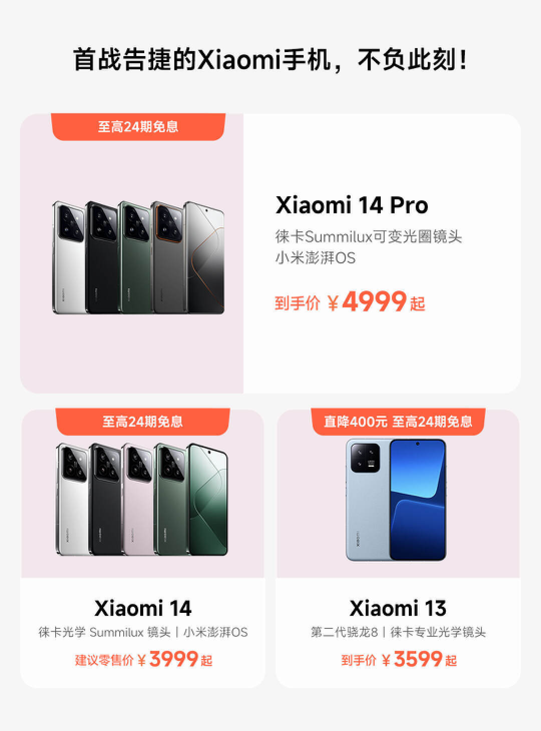 首先,小米14系列首发了骁龙8Gen3处理器,升级了小米澎湃OS系统,且搭载了徕卡Summilux镜头和自主品牌影像传感器,光影猎人。而小米14 Pro在屏幕配置上,也有了全面升级,除了采用自研全等深曲面屏外,在屏幕表面还覆盖了一层自研的保护玻璃——龙晶玻璃,就自主创新能璃来看,可以说,小米14系列走在了行业的前沿。3999元起步的价格,还有啥可犹豫的?