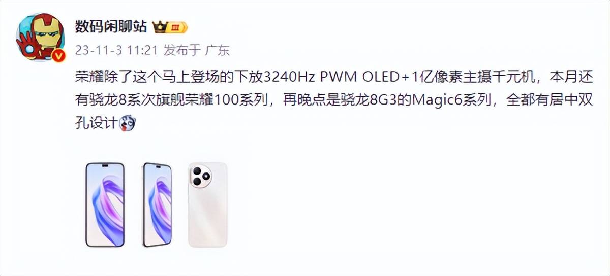 荣耀新机——荣耀100系列即将登场:外观致敬华为P60 Art,骁龙8Gen2+3840Hz无风险超高频PWM调光+2亿像素拍照。