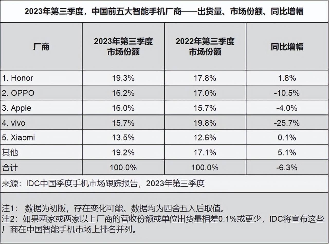 2023年第三季度,得益于荣耀X50和荣耀90系列等机型的上佳市场表现,荣耀以18.3%的市场份额,成为中国智能手机市场市占率第一的手机品牌。