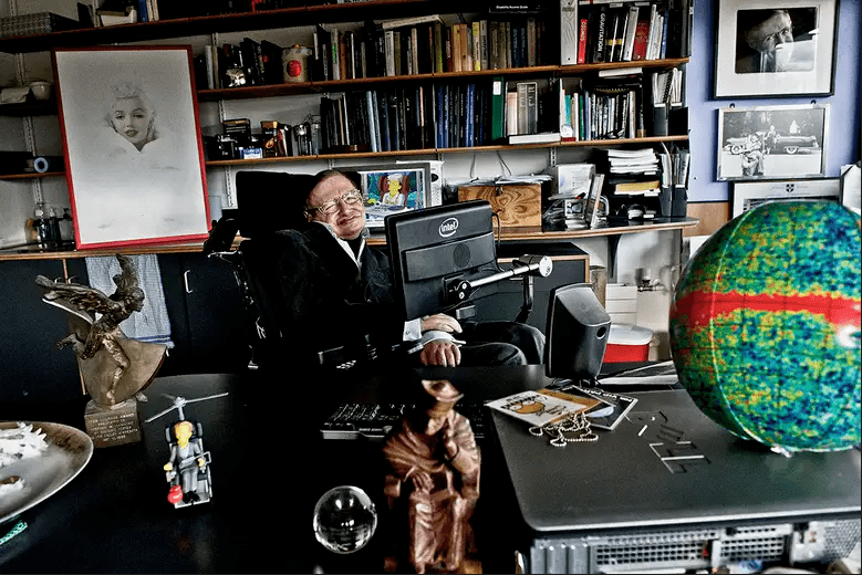 史蒂芬在他剑桥的办公室,拍摄时间是2012年,他70岁生日的时候