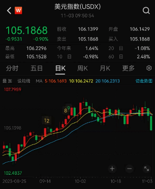 在非农就业数据公布后,美元指数快速跳水,大跌超1%,收于105.07。美股高开高走,三大指数集体收涨,均录得五连阳,齐创近一年来最大单周涨幅。美债收益率跳水,十年期收益率收于4.57%,创一个月新低,连续三日盘中降超10个基点,两年期收益率一度降近20个基点至两月低位。