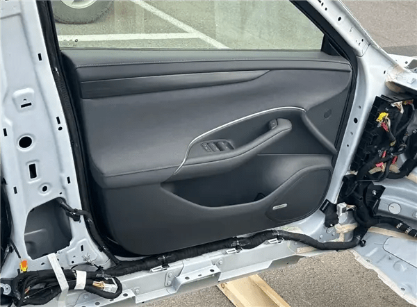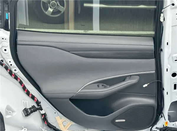 从框架看,小米第一款车和特斯拉Model 3有点相似,尤其是车内门板的把手区域,布局什么的和特斯拉不说完全一样,也有七八分相仿,走的是简约风。