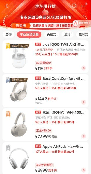 近日京东蓝牙/无线耳机排行榜