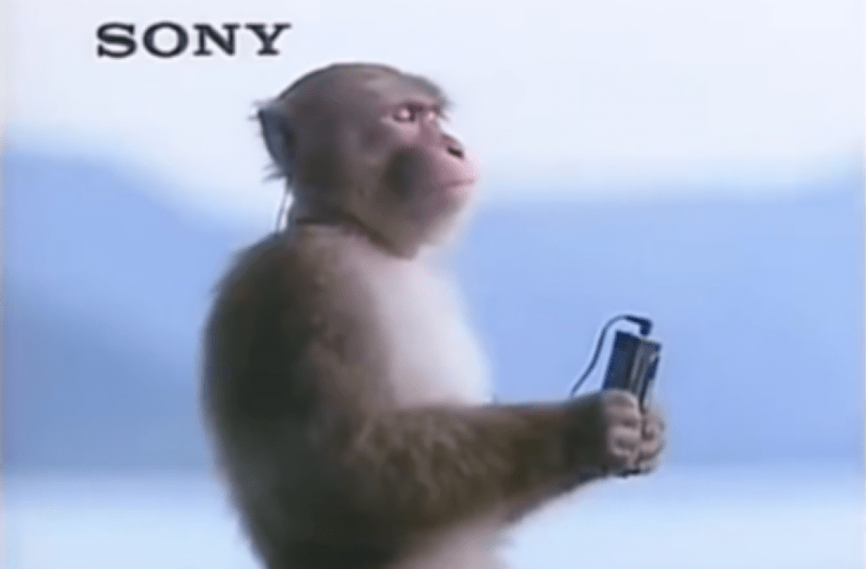 (该图为1987年索尼(SONY)磁带单放机WM-501的电视广告截图)