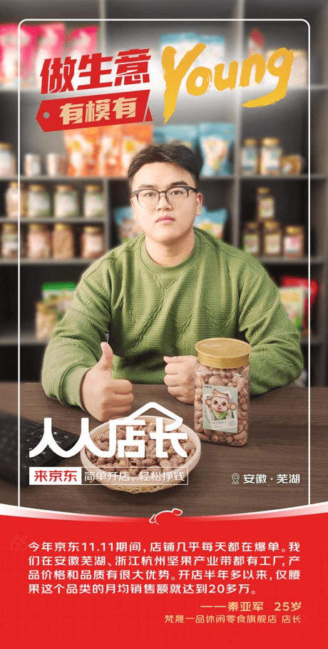 98年小伙专注卖优质低价坚果 京东11.11期间店铺成交额环比增长2倍