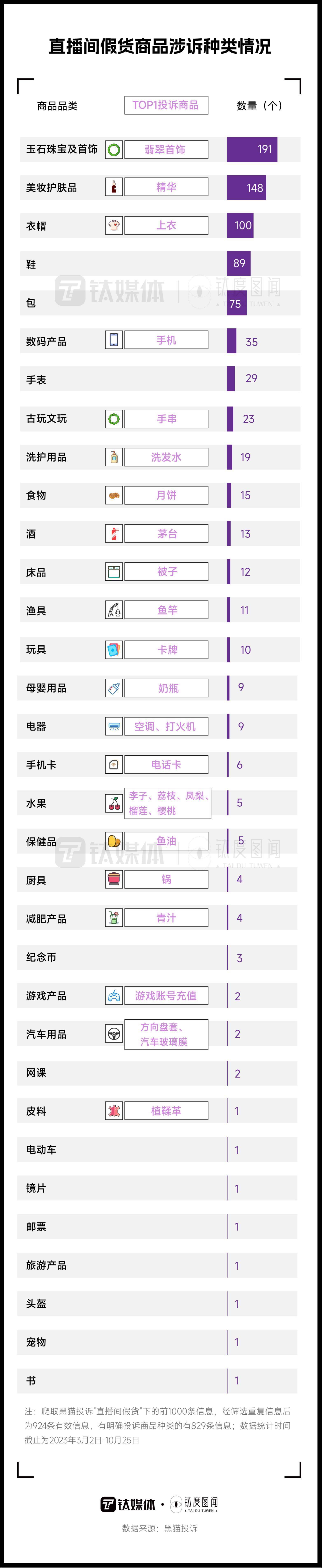 不止“李佳琦直播间”,此前“刘畊宏直播间”、“罗永浩直播间”均被曝出过产品售假问题。在选品较为严格的头部主播直播间,假货问题都层出不穷。在直播间中,哪些品类更容易买到假货?在假货问题上,消费者折损了多少钱?本期钛媒体·钛度图闻通过分析“黑猫投诉”的信息带你解密直播间的假货重灾区。