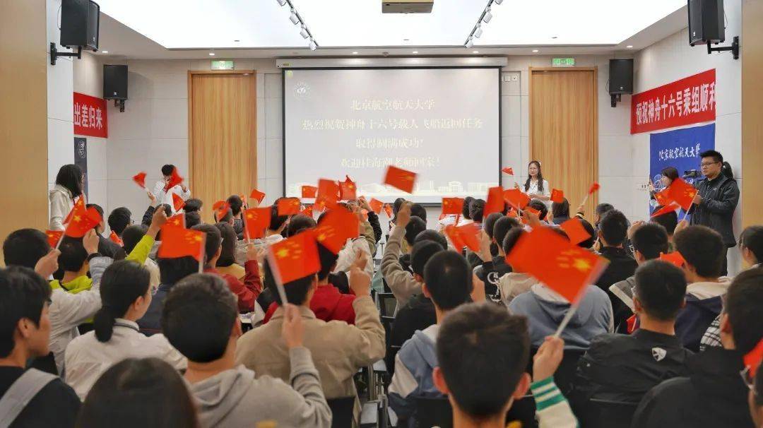 5个月的太空“出差”之旅,全体北航人时刻关注、始终牵挂着桂老师的各项动态。5月30日,他随神舟十六号载人飞船从酒泉卫星发射中心发射升空。学校师生在屏幕前观看发射直播,送桂老师出征。出发前,同学们在微信群里纷纷祝桂老师早日凯旋。社交媒体上,网友们转发刷屏,热议桂海潮是戴眼镜的航天员,“我的导师上天了”,为他的成长经历和意志品质感动、点赞。在轨期间,校党委书记赵长禄、校长王云鹏代表学校向桂海潮送去关心慰问,勉励他不负重托、为国争光,逐梦星辰大海,希望他扎实工作、履职尽责,圆满完成任务。