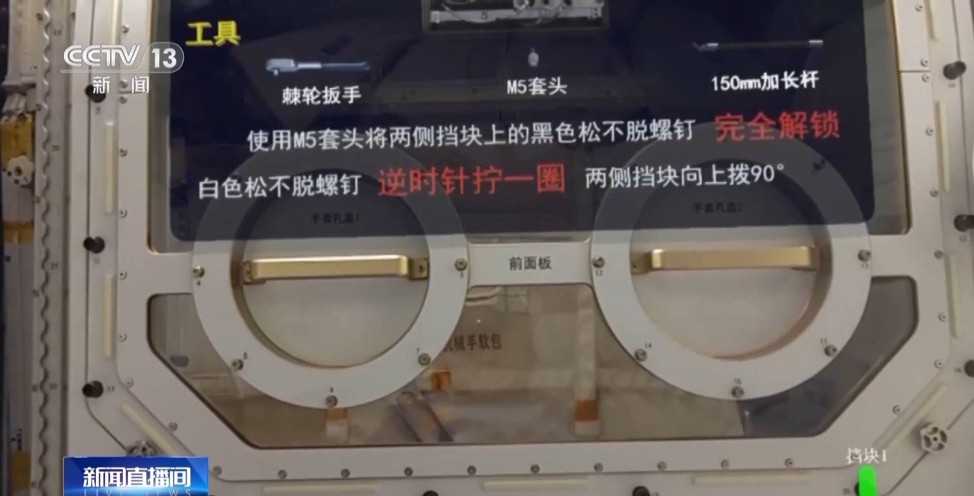中国科学院空间应用工程与技术中心研究员 张璐:这里面我们主要是进行一些小载荷、标准载荷的维修操作,包括一些有密闭要求的载荷,我们可以通过更换手套进行操作。舱外的大型载荷,它有一些安装、升级,甚至拆装的操作,可以通过把这个平台拉开,展开成一个大概900毫米乘以700毫米的大平板。我的舱外的这些大载荷,可以在这个大平板上安装固定,然后航天员在这个平板上结合我内部丰富的各种载荷的接口,来进行相应的维修操作。