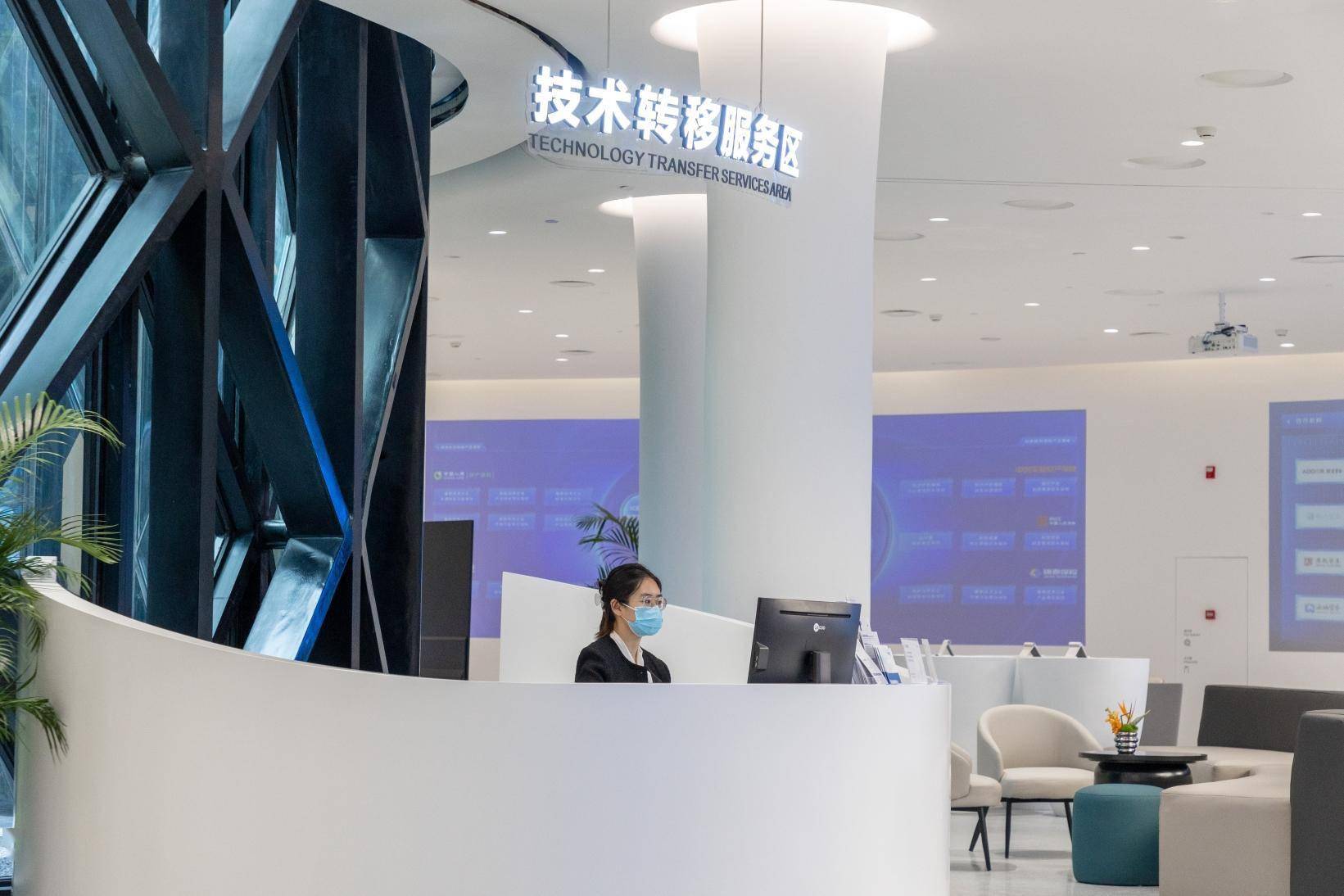 成都科创生态岛1号馆一楼科技服务区共分为科技政务、知识产权、科技金融、技术转移、科创综合服务、科技路演培训6大服务单元,打造“一站式”科创服务大超市。