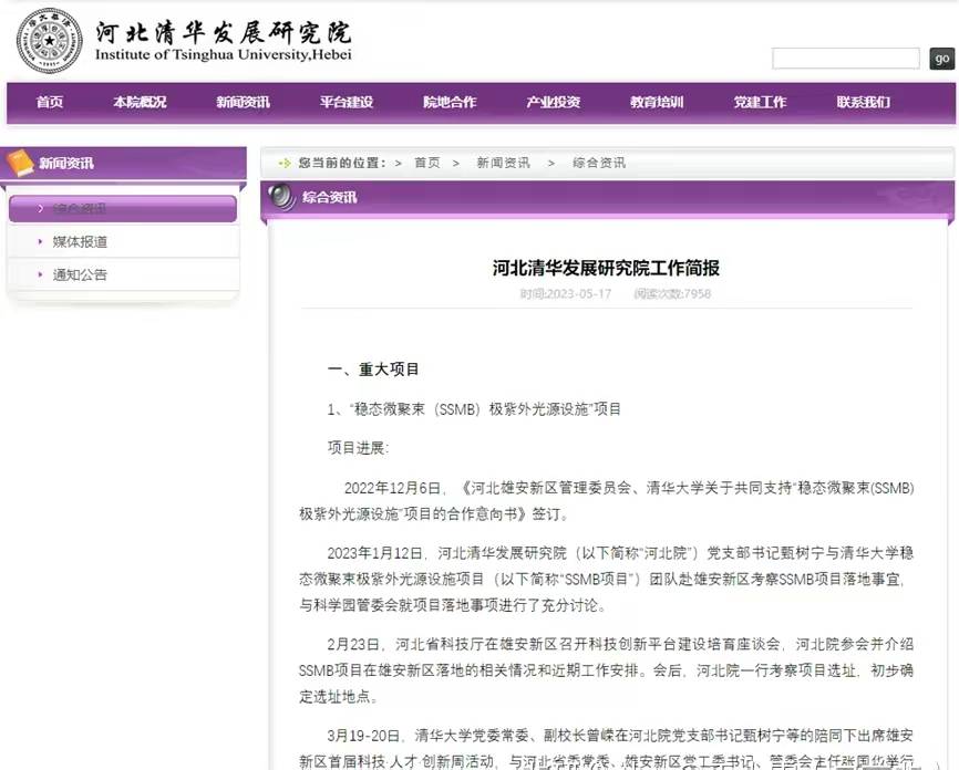 据报道,SSMB技术已经在北京高能同步辐射光源项目(HEPS)上进行了实验验证,并取得了成功。HEPS是我国第一台高能量同步辐射光源,也是世界上发射度最低、亮度最高的第四代同步辐射光源之一。HEPS通过加速器将电子束加速到6GeV,然后注入周长1360米的储存环,用接近光速的速度保持运转。电子束在储存环的不同位置通过弯转磁铁或者各种插入件时就会沿着偏转轨道切线的方向释放出稳定、高能量、高亮度的光(同步辐射光)。