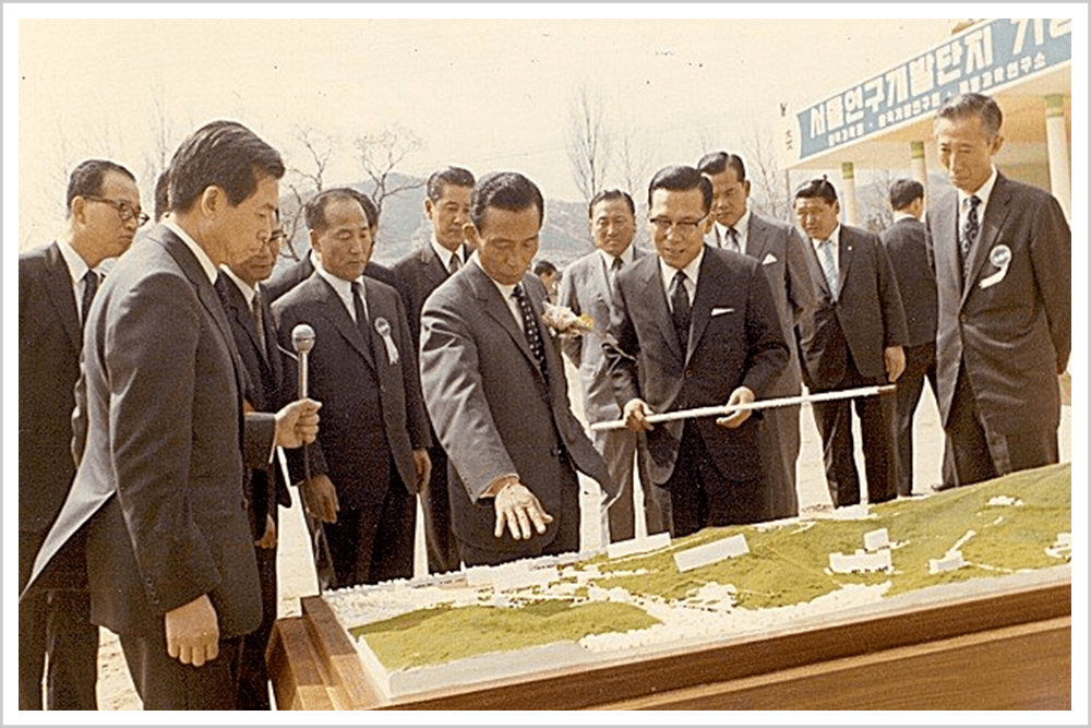 ▲1971年4月,朴正熙出席韩国科学技术院洪陵校区奠基仪式