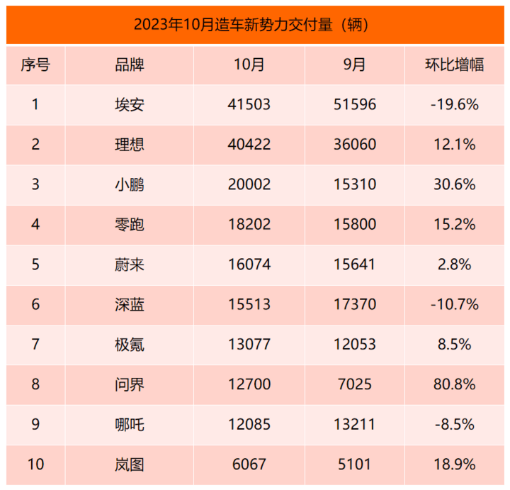 6、10月新势力榜:理想首次突破4万辆 小鹏重回前三