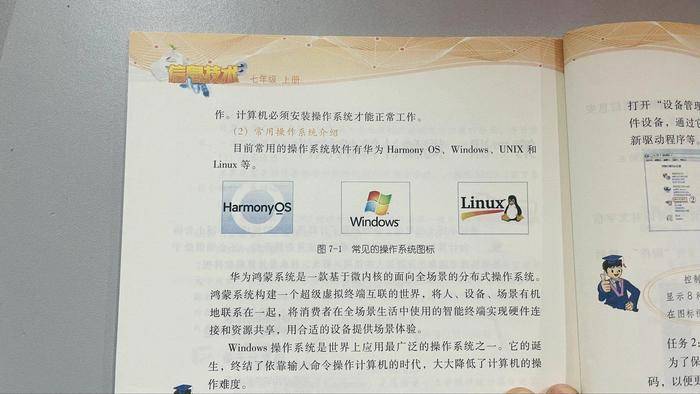 此外,近日,有细心的家长发现,七年级的《信息技术》教材中对常用的操作系统进行了介绍,在这些全球知名的操作系统中,中国自主研发的操作系统格外抢眼,就是华为的HarmonyOS。对此,有数码博主表示,作为华为自主研发的全场景操作系统,鸿蒙系统自发布以来就引起了行业内外的广泛关注。虽然对于鸿蒙系统的讨论存在多种声音,但无论是赞誉还是质疑,都无法掩盖一个事实,那就是鸿蒙系统正在不断完善和发展,其技术实力和影响力已经不容小觑。鸿蒙系统作为新时代的全场景操作系统,可以说引领了万物互联时代的发展。