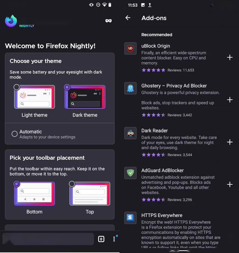 IT之家注:2021 年 1 月,Mozila 为安卓版 Firefox 浏览器带来了对扩展程序的有限支持。在过去几年时间里,安卓版 Firefox 的开发重心主要在核心功能上,仅支持少量扩展。