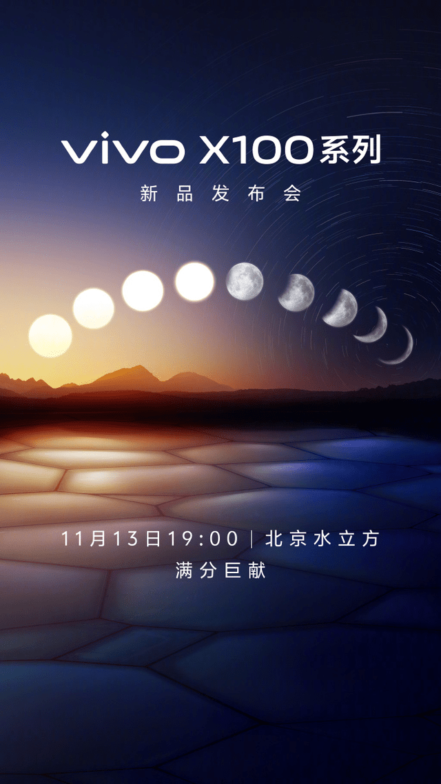 vivo X100系列是vivo的最新高端力作,也是vivo对未来科技的探索和创新。这款“超满分旗舰”将带来前所未有的性能、影像和系统体验。11月13日,一起期待vivo X100系列在水立方的惊艳亮相。