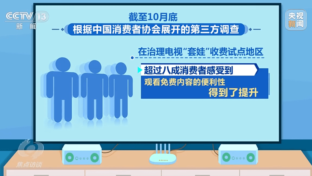 为解决电视用户的这些烦恼,今年8月起,国家广电总局联合有关部门开展了治理工作试点。①治理电视操作复杂,目前全国80%的有线电视终端、85%的IPTV终端已实现开机看电视直播频道。②解决电视“套娃”收费问题,要求所有电视大屏页面在首页首屏都要设置免费专区入口,所有收费节目要有明显标识。