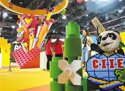 从首届进博会的“进宝”主题乐高颗粒马赛克墙,再到今年的“玩乐之心”,乐高集团已是第六次为进博会定制大型3D乐高积木模型装置。今年的“玩乐之心”装置高达4.6米,是乐高集团参加进博会以来最高的大型3D乐高积木模型。记者看到,“玩乐之心”包含了19颗爱心,每一颗“爱心”均包含独有寓意。如中国结爱心表达吉祥如意的美好祝福,木头鸭子爱心的灵感源于乐高集团创始人最初制作的木头鸭子玩具。