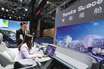 11月5日,媒体记者在第六届进博会汽车展区体验丰田公司的智能座舱。新华社记者 辛梦晨 摄