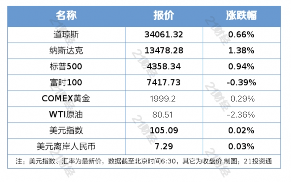 纽约股市三大股指3日上涨。截至当天收盘,道琼斯工业平均指数比前一交易日上涨222.24点,收于34061.32点,涨幅为0.66%;标准普尔500种股票指数上涨40.56点,收于4358.34点,涨幅为0.94%;纳斯达克综合指数上涨184.09点,收于13478.28点,涨幅为1.38%。